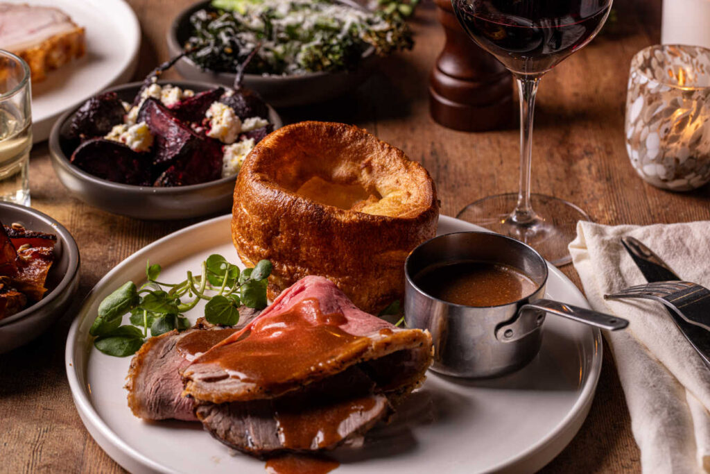 All served with roast potatoes, seasonal greens, roasted roots, Yorkshire pudding, beef dripping gravy